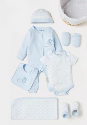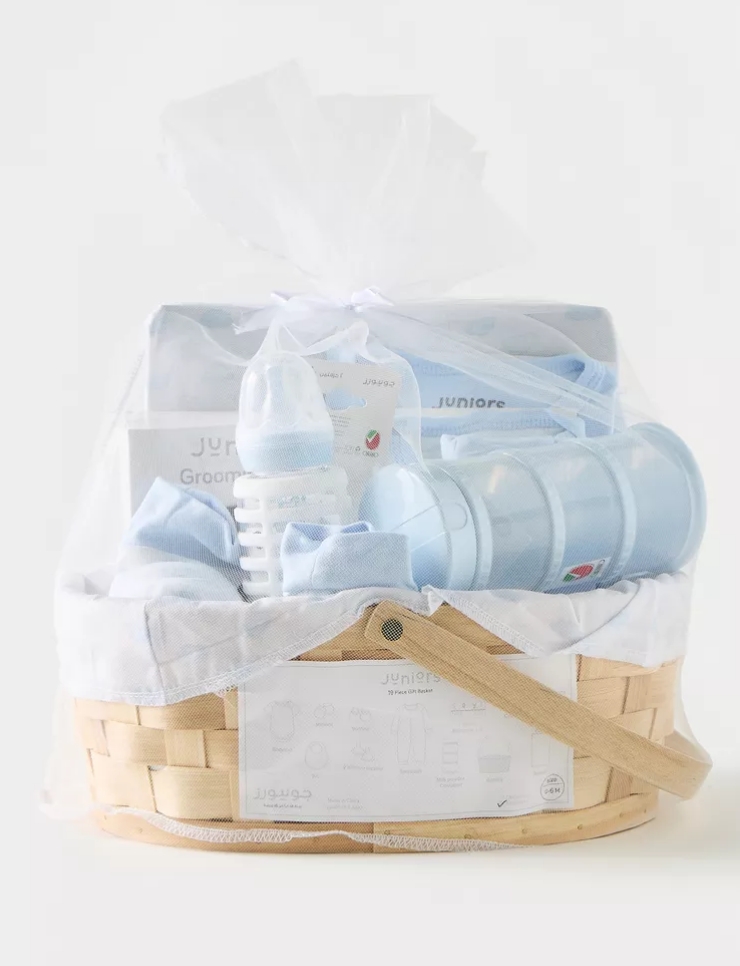 This gift basket is the perfect way to celebrate the arrival of a new baby. It includes a variety of items that will be useful for both mom and baby, including a soft blanket, a cuddly toy, and a set of clothes. The basket is also decorated with a cute bow, making it a special and memorable gift.